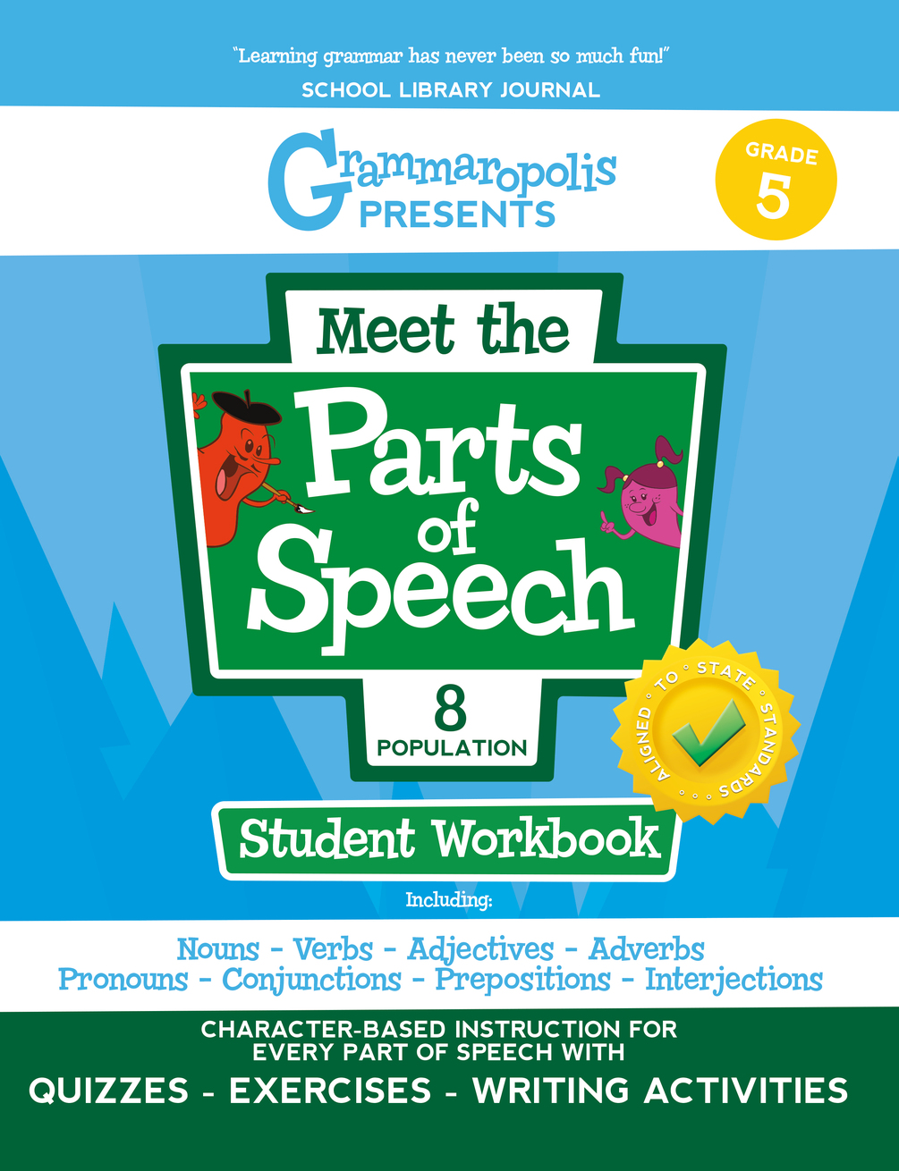 Visit a neighborhood for every part of speech! This skill-building workbook for fifth grade features our revolutionary character-based instruction along with assorted comprehension checks and fun writing exercises.
